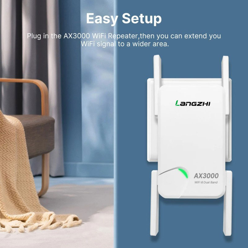 Wi-Fi 6 AX3000 Signal Extender, Dual-Band 5G & 2.4G Range Booster, Long-Distance Coverage, Eliminate Dead Zones, Ultra-Stable High-Speed Connection.